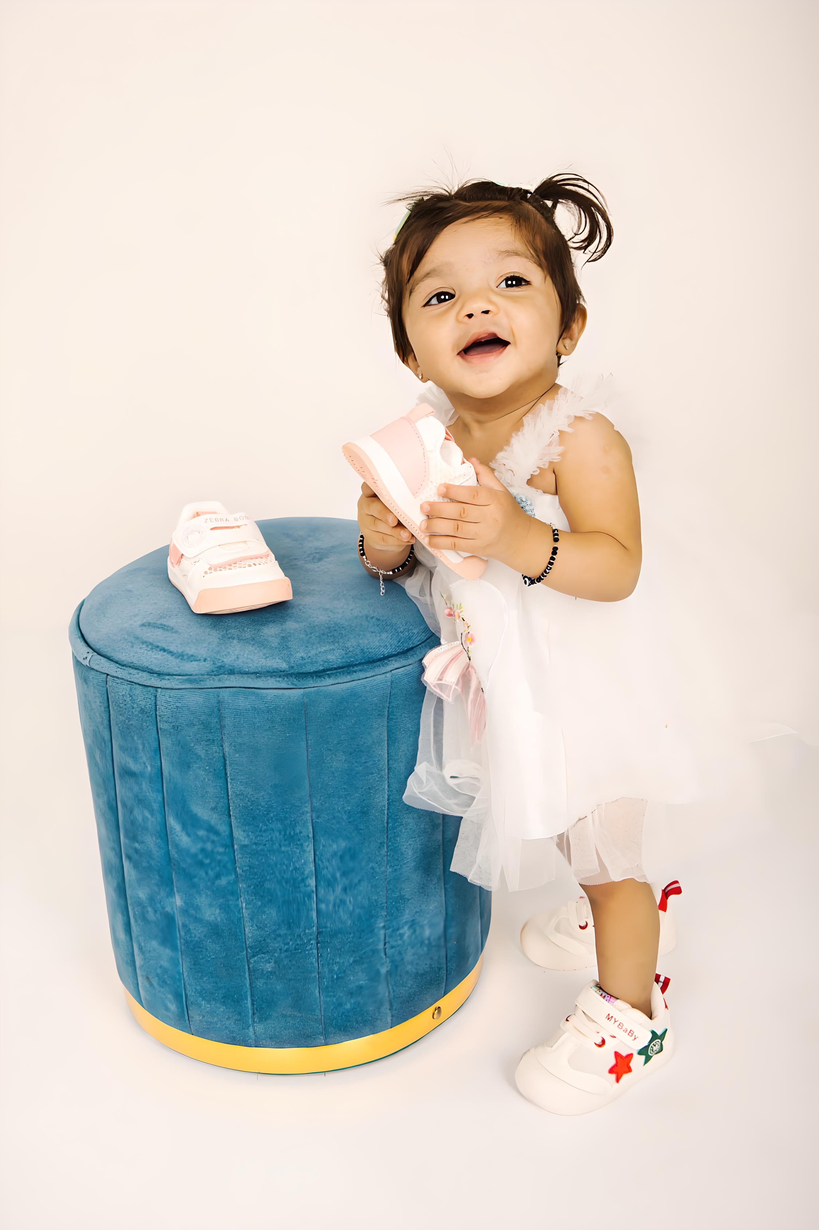 Crafted with a soft breathable mesh upper and cushioned insole, these sneakers keep tiny feet cool and comfortable. The non-slip rubber outsole provides excellent stability, while the Velcro strap ensures a secure and adjustable fit.